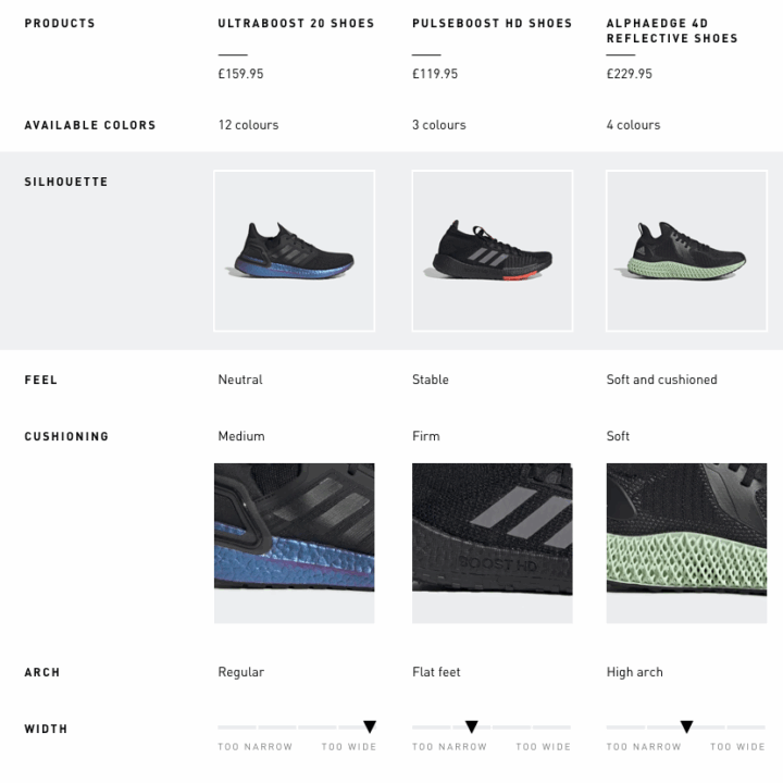 Product relevance – users would have liked to select the products themselves, but are open to adidas’ suggestions at this point. They understand the products offered relate to the product they chose to see.